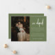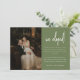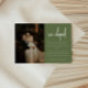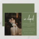 Anúncio de Casamento de Foto Verde Azul Moderno. Adicione sua mensagem de elopemento, sua foto favorita de casamento, e noiva e iniciais de noiva a este cartão de anúncio minimalista e elegante 'nós fugimos'.