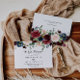 Este anúncio de elopemento de caligrafia russa de outono tem um belo design rústico. A design apresenta flores brilhantes, vermelhas, marinhos, azuis e esbranquiçadas radiantes e graciosas pintadas à mão, inspiradoras beleza natural. Personalize a placa com os detalhes do seu casamento e use a modelo na parte traseira para anunciar uma alteração de endereço, informações de recepção ou quaisquer outros detalhes que você gostaria de compartilhar.