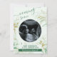Em breve, o Cartão de Anúncio de Gravidez que você pode personalizar com sua própria foto, nome do bebê, data de vencimento e seus nomes. O modelo de foto está preparado para você carregar sua própria foto, que pode ser sua imagem de ultrassom/sonograma, uma foto de maternidade ou mesmo apenas um par de calçados de bebês! O cartão de anúncio é escrito com script manuscrito para "em breve" e tipografia de máquina para seus detalhes personalizados. O design botânico apresenta uma folhagem elegante com um verde-aquarela, folhas de ouro desenhadas por linhas e salpicos de ouro.