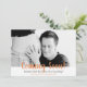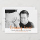 Um pai fofo abraçando o anúncio da gravidez do bebê com as palavras: "chegando logo!". Personalize com seu próprio pai para ser uma foto abraçando o bebê ou componha seu próprio tema para seu anúncio. A fonte é moderna e moderna em estilo com cor de pêssego e cinza. A parte traseira da placa está em uma matiz de pêssego correspondente.