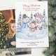 Anúncio de gravidez no cartão de Natal com data de vencimento do novo bebê. O texto diz "Feliz Natal da nossa famosa de três!" (que pode ser editada se quiser), seguido da saudação personalizada de natal. Este design de aquarela apresenta 3 bonitos bonitos bonitos bonitos bonitos bonitos bonitos bonitos de neve com pano de fundo das árvores de natal. O modelo fotográfico está configurado para que você adicione uma foto de gravidez ou ultrassom de ultrassom de sonograma no verso com data de vencimento do bebê ou seu texto personalizado. Sua foto é exibida no formato vertical do retrato, de modo que, se você tiver problemas com o posicionamento da imagem, tente recortar para a forma relevante e recarregar.