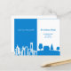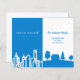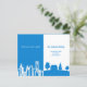 Um cartão de anúncio elegante e minimalista que vai de uma vida urbana a uma vida rural rural. Azul e branco com um horizonte urbano e uma casa de campo. Personalize e adicione seu novo endereço e mensagem à sua família e amigos.