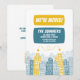 Padrão de estilo retroativo com edifícios de desenho animado amarelo e azul para um novo anúncio de endereço muito exclusivo. ★ Por favor, verifique a coleção correspondente para COORDENAR ITENS.¨¨¨.