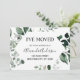 Eucalyptus Greenery Wreath Modern and Elegant Floral Watercolor Primavera I Moved New Home ou New Address Cards - inclui uma bela e elegante tipografia de script com um verde botânico moderno para a celebração especial New Home ou New Address.