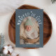 Cartão de nascimento elegante e moderno do tema do Natal, com um texto que diz "embrulhado no amor" com estrelas. Este é um cartão de anúncio de nascimento para as férias! Adicione suas fotos, estatísticas de natalidade e uma mensagem! O fundo é azul ardente.