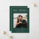 Casamento engraçado salve as datas em um design verde "Bebidas grátis (e vamos nos casar) com sua foto. Estes modernos salvam as datas são perfeitos para o casal divertido que mal pode esperar para celebrar no seu casamento com a família e amigos.