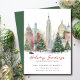 Este anúncio festivo de mudança para o feriado de Natal apresenta o ditado "Saudações de Férias da Nossa Nova Casa" com uma bela cena urbana em aquarela com árvores de Natal espalhadas. O anúncio é perfeito para enviar a amigos e familiares durante a temporada de festas para que saibam sobre o seu novo endereço. A frente do anúncio apresenta o ditado e a cena de rua da cidade nevada em aquarela, e inclui o seu novo endereço e informações de contato. O design geral é festivo e charmoso, e o anúncio certamente colocará um sorriso nos rostos dos seus entes queridos.