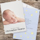 Anúncio de nascimento de bebês com azul giro e bonito, modelo de foto minimalista, estrelas brancas e amarelas, tipografia mínima da tendência na moda, um doce e adorável tema da rima de berçário, uma pequena estrela giratória e reviravolta, um anúncio de bebê nascer de bebê, uma ilustração de desenho animado de vaca, uma fazenda de estrelas da lua animal simples, um anúncio de bebê criativo e bonito