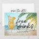 Encantem seus hóspedes para o seu grande dia com este engraçado casamento na praia, salve as datas! Com um design vibrante, nossa design de "Bebidas grátis (e vamos nos casar)" fará todos sorrir. Personalize com seus detalhes de casamento e envie emails para a família e amigos, pedindo que salvem a data de um dia inesquecível de amor e alegria.