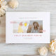 O tempo voa! Comemore a grande conquista do seu formando com este anúncio de formatura em duas fotos. Ele apresenta espaço para uma foto do passado à esquerda e uma foto do dia presente à direita e aos anos. Personalize-o com seu nome de formando, escola e ano de aula. As costas têm um padrão de faixa fina que coordena.