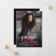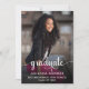 Adicione seu próprio retrato pessoal de fotos para criar uma adorável conta de graduação de segundo grau para sua filha. O texto do "Formando" tem um roteiro decorativo com caudas e pestanas e é criado com um gráfico digital vetorial que permite alterar a cor branca para corresponder às suas necessidades. A fonte simples de seu NOME, SEGUNDO GRAU e CLASSE DE 2023 e a mensagem de lançamento no verso podem ser personalizadas conforme necessário.
