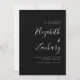 Este simples casamento moderno salve o cartão de data com texto branco em caligrafia de escrita manual e sans serif, alinhado com a margem direita em um fundo preto. A parte traseira da placa é preta e sólida.