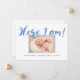 Roteiro de Caligrafia Whimsical Here I am I am Blue Boy Photo Birth Announement - a cor da manchete do script pode ser alterada para qualquer outra cor na ferramenta design. Texto totalmente personalizável para que este cartão possa também ser usado como cartão de anúncio de adoção.
