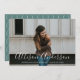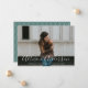 Anúncio de graduação elegante com a foto horizontal do formando e o nome do formando em uma cobertura branca de script de caligrafia. Personalize o anúncio de graduação de fotos, adicionando o nome da escola e o ano de graduação. O anúncio é invertido para exibir um padrão de pisca branca e um fundo verde de sábio escuro.