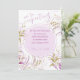 Cartão de aviso de gravidez elegante com design botânico e inscrição manual em tons de rosa. Este cartão de lançamento apresenta folhagem delicada em aquarela com folhas de ouro desenhadas por linhas e salpicos de ouro. "Estamos esperando" está em escrita manual e sua mensagem personalizada é impressa em tipografia de máquina de escrever. O modelo está configurado para que você adicione sua mensagem, incluindo o nome e a data de vencimento do bebê, juntamente com o(s) nome(s).