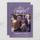 Olá e bem-vindo aos meus produtos de celebração de casamento. O primeiro passo para muitos casais na celebração do casamento é anunciar o noivado. Mesmo que você não esteja planejando uma festa de noivado, amigos e familiares ainda vão adorar ouvir a notícia. Um anúncio de noivado com foto é a maneira perfeita de fazer isso. Todos vão adorar ver vocês dois juntos. Se eles ainda não conheceram seu parceiro, eles vão adorar ver a foto dele. Este é um dos meus anúncios de noivado mais coloridos e divertidos. "Nós estamos noivos" está escrito em uma fonte de letra cursiva branca bonita. Sua foto é colocada abaixo. Seus nomes seguem e há duas linhas para personalizar seu texto. O verso é a mesma cor roxa profunda. Me envie uma mensagem, sou a Nelda, se você tiver alguma dúvida. Eu adoraria trabalhar com você. Parabéns pelo seu no