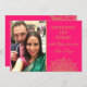 A tipografia moderna Dourada Cor Rosa Estilo Indiano é a base para esta design de casamento na moda. Todas as informações são facilmente alteradas para tornar seu próprio Casamento personalizado 'Salvar a Data'. Altere a imagem da área de proteção de local para a sua. Parte de uma suíte de papéis de carta do Chessie's Fine Designs.
