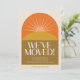 Anuncie sua nova casa com estilo com este cartão personalizado "Mudamos" inspirado no retro, apresentando um ousado design de explosão solar em tons quentes de laranja, mostarda e creme. Perfeito para famílias que procuram compartilhar seu novo endereço de forma moderna e nostálgica, este cartão combina charme vintage com tipografia contemporânea. Ideal para manter amigos e entes queridos atualizados, este design agrada a quem aprecia papelaria personalizada e atraente, com um toque artístico único.