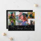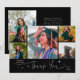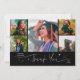 Cartão de foto de anúncio de graduação moderno e caprichoso com 5 fotos na frente e 1 no verso. O texto com letra manuscrita diz "Obrigado" com estrelas brilhantes. Adicione o nome do graduado, informações e mensagem para personalizar este cartão. Preto.