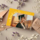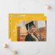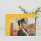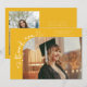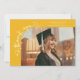Cartão de foto de anúncio de formatura excêntrico e caprichoso com uma foto na frente e 1 no verso. O texto diz "obrigado" em escrita à mão excêntrica com estrelas e confetes. Adicione o nome do graduado, informações e mensagem para personalizar este cartão. Amarelo.