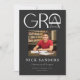 Esses modernos anúncios de graduação em preto, branco e cinza 5" x 7" apresentam a palavra "Formando" em um design abstrato. Insira uma de suas fotos favoritas junto com seu nome, ano de graduação, escola, grau e área de foco. O verso tem uma simples linha de cinza de luz sobre um fundo preto.