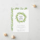 Azeitonas verdes bonito com aquarela e coroa de folhas, Wedding Save the Date Card. A parte traseira do cartão corresponde ao padrão de azeitona e verde. Projetado para combinar com nossa Coleção de Verde Oleícola Tuscana.