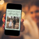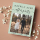 Um elopeio verde moderno ou um anúncio de casamento e um convite de recepção para informar a família e os amigos que você se casou em uma pequena cerimônia de casamento, e convidá-los agora para uma recepção de casamento. A frente mostra sua foto do dia do casamento e "Feliz Festa Sempre" em uma mistura de simples tipografia e roteiro de tendências com balanços. Em sua foto, adicione seus primeiros nomes e a data do casamento. No verso, personalize sua mensagem com mais detalhes e adicione detalhes de convites de parte ou recepção e seus nomes em um script semelhante a assinatura.