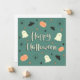 Mande aos seus entes queridos um cartão de saudação feliz de halloween com este design fofo e assustador de fantasmas, morcego, abóbora e aranha.