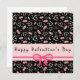 Cartão de saudação de dia de os namorados com corações e lábios cor-de-rosa e branco sobre fundo preto.