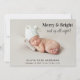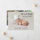 Foto de 4 fotos de Natal, anúncio de nascimento. A fotografia do seu recém-nascido preenche a frente do cartão com "Feliz e Brilho e para cima a noite toda!" escrito em uma mistura de tipografia elegante e um roteiro para o na moda (este texto pode ser movido na ferramenta design para se adequar à sua fotografia). Adicione seu nome e estatísticas de natalidade. No verso, adicione 3 fotos adicionais, um cartões de natal e seus nomes.