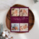 Cartão de nascimento com tema moderno do Natal, com um texto tipográfico que diz "um pequeno feriado feliz" com 4 fotos quadradas. Este é um cartão de anúncio de nascimento para as férias! Adicione suas fotos, estatísticas de natalidade e uma mensagem! O fundo é morango.