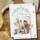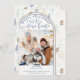 Feliz Natal do nosso novo cartão de anúncio de feriado do New Home. A design apresenta caligrafia manuscrita e um padrão desenhado de rabiscos de árvores de natal e casas em bege natural verde azul. O modelo de foto está pronto para que você adicione sua foto, que é exibida em formato quadrado e você pode editar o texto para torná-lo adequado para solteiros, casais e famílias. Este cartão de Natal fotográfico da sua nova casa é uma elegante escolha 2 em 1 para dizer feriados felizes e para que todos saibam seu novo endereço ao mesmo tempo.