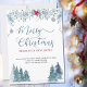 Cartão de anúncio móvel de Feriado de Aquarelas com floresta de inverno e garland botânica de poinsettias e folhagem de inverno. O Feliz Natal é marcado à mão e o design pode ser editado para um solteiro ou para uma família. O texto diz: "Feliz Natal do meu/nosso novo lar [o seu novo endereço, o seu nome e o(s) seu(s) nome(s)]. Um design elegante para que todos saibam seu novo endereço para o feriado.