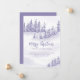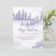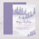 Cartão de anúncio móvel de Feriado de Aquarelas com floresta de inverno e neve flutua em tons de roxo e lilás. O Feliz Natal é escrito à mão e o design pode ser editado para um solteiro ou para uma família. O texto diz: "Feliz Natal do meu/nosso novo lar [o seu novo endereço, o seu nome e o(s) seu(s) nome(s)]. Um design elegante para que todos saibam seu novo endereço.