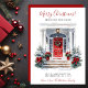 Esta nova casa de Natal Feliz para o cartão de anúncio de feriados com uma porta vermelha festivamente decorada com árvores, uma coroa e arcos de férias vermelhos seria perfeito para enviar para seus amigos e família agora que você se mudou para uma nova casa. O sentimento é personalizável. Basta para que todos que conheces e amamos tenham o teu novo endereço. Ficarão tão animados com a sua grande jogada!
