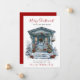 Esta rústica aquarela Feliz Natal, nova casa para o cartão de anúncio de feriados com uma porta da frente festivamente decorada com arbustos e árvores de pinheiro, uma coroa, e arcos de feriados vermelhos seria perfeito para enviar aos seus amigos e família agora que você se mudou para uma nova casa. O sentimento é personalizável. Basta para que todos que conheces e amamos tenham o teu novo endereço. Ficarão tão animados com a sua grande jogada!