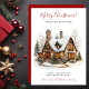 Esta nova casa de Natal Feliz para o cartão de anúncio de feriados com uma casa confortável do Tudor com tosse de pinho, luzes e árvores seria perfeito para enviar aos seus amigos e família agora que você se mudou para sua nova casa. O sentimento é personalizável. Basta para que todos que conheces e amamos tenham o teu novo endereço. Ficarão tão animados com a sua grande jogada!