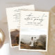 A Elegância se desdobra com o Creme Nosso Convidado Feliz Nunca Depois da Festa Celebra o início de sua eternidade em estilo e convida seus entes queridos a continuarem as festividades com nossos convites recepções de casamento em creme 'Feliz Sempre Depois da Festa'. Projetado para ecoar a alegria e sofisticação de seu dia especial, este convite é uma combinação perfeita de elegância e celebração. Design da frente: Enquanto os convidados fazem o convite, eles são recebidos por uma maravilhosa foto de casamento capturando um momento alegre favorito do seu casamento — seus sorrisos, o cenário, o ambiente — todos insinuando a revelação a vir. Acima desta fotografia, a frase "feliz para sempre, depois da festa" é pendurada num belo roteiro escrito à mão, incorporando a transição perfeita dos vossos votos ao entretenimento da noite. Abaixo, os nomes do casal e a data do seu sindicato são bem apresentados, servindo de recordação precioso do seu dia. Design de trás: Sacudir a carta para descobrir um anúncio de casamento, elegantemente enquadrado e levando ao caloroso convite para o seu casamento após a festa de recepção. Uma foto horizontal de casamento — cuidadosamente selecionada por você — serve como pano de fundo pessoal para os detalhes da sua família, criando uma conexão íntima com cada destinatário. Todas as palavras estão saborosamente dispostas a convidar os vossos convidados para o coração da vossa celebração, assegurando-lhes que sabem quão importante é a sua presença para a continuação da vossa história de amor. Inclua seu site de casamento para atrair seus convidados para ver mais fotos de seus núpcias, e dê seus rsvps no seu site de casamento. Recursos do produto: Papel de alta qualidade: Papel grosso e premium que se sente tão luxuoso quanto parece, disponível em vários acabamentos para se adequar ao seu gosto pessoal. Fotos personalizáveis: escolha as suas fotos de dia de casamento mais apreciadas para um toque verdadeiramente personalizado. Elegante Script: O estilo manuscrito adiciona um toque de capricho e romance ao sofisticado design. Informações detalhadas: Todos os detalhes pertinentes são apresentados em um formato claro e elegante, garantindo que seus convidados tenham todas as informações necessárias. Tamanho e Forma: Uma orientação paisagística moderna oferece uma apresentação dinâmica e envolvente. Com os nossos convites "Feliz Festa Nunca Depois", a magia do seu dia de casamento estende-se à noite e além. Envie esta última chamada para a diversão, um belo lembrete de que enquanto a cerimônia pode acabar, a celebração do seu sindicato está apenas começando. [Encomenda agora] e deixe as memórias continuarem em estilo! Entre em contato com o designer para produtos correspondentes. Copyright Anastasia Surridge, todos os direitos reservados.