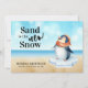 Novo endereço Cartão de Anúncio Móvel Feriado de Cena de Penguin Beach... "Sand is the New Snow" é a legenda em serif e tipografia de guião no nosso anúncio comovente de feriado com um pinguim bonito de inverno que pousa o seu gelo numa praia arenosa tropical. A saudação na frente do cartão diz "Cartões de natal da nossa nova casa." A parte de trás do cartão contém todos os detalhes que sua família e amigos precisarão saber sobre sua mudança para um clima mais quente com praias. Todo o texto (exceto "Areia é a Nova Neve") pode ser facilmente revisado no modelo de personalização.
