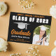 Este convite de festa de formatura e anúncio de formando personalizado, cor de laranja e preto, apresenta a tipografia branca típica do seu nome de universidade para a classe de 2024. Personalize com seu ano de graduação com o script manuscrito preto chic e boné formando preto para placas de excelente. Adicione os detalhes da sua festa no verso.
