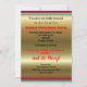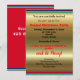 Um efeito de pergaminho de fundo de ouro festivo. Detalhes do Convite de festas de Natal anual em texto vermelho e preto para personalizar para sua festa de Natal em casa ou em sua empresa. Vermelho, azul, prata, listras verdes. A parte de trás é vermelha sólida com os detalhes dos Papais noeis Secretos na fonte branca de neve divertida. Designs originais por TamiraZDesign.