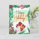 Elegante Feliz Feriados de Natal Cartão de Saudação Elegante e criativo cartão de Natal feliz com folhas de pinheiro, bagas vermelhas, ornamentos, presentes, meias e pão de gengibre. Você pode alterar a cor de fundo de acordo com sua escolha.