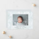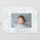 Anúncio de nascimento moderno, simples e elegante para um bebê nascer de inverno com uma cobertura de flocos de neve nas bordas da foto. Fundo azul de mármore gelado com flocos de neve brancos. Personalize facilmente este cartão de anúncio de nascimento fofo com a sua própria fotografia e todos os detalhes.