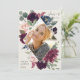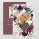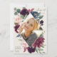 O anúncio elegante de fotografia floral apresenta uma foto vertical num quadro em forma de diamante de flores a aquarelas e folhagem em tons ricos de rosa rosa poeirento, roxo de ameixa roxa, verde-sábio e azul escuro empoeirado. Personalize com seu nome de formando, ano de aula e escola. Adicione uma mensagem pessoal ao verso, juntamente com uma foto adicional.