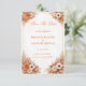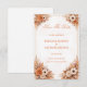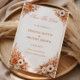 Um design refinado e romântico inspirado nos tons de outono, apresentando arranjos suaves de flores laranja, creme e bege. A composição é emoldurada com elementos botânicos delicados, criando um layout equilibrado e harmonioso. A tipografia elegante e as cores quentes e terrosas realçam a estética atemporal e inspirada na natureza.