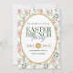 Floral de páscoa Brunch Party Um elegante buquê floral de flores aquáticas enquadra esta adorável festa de Páscoa religiosa para um encontro de igreja ou um brunch de Páscoa. Floral de páscoa Brunch Party Convites personalizados de brunch de Páscoa impressos personalizados com os detalhes do evento. Este bonito design botânico apresenta uma moldura de aquarela de flores coloridas. Use as ferramentas de design para personalizar o texto, editar as fontes e as cores de um convite elegante de festas de Páscoas florais de primavera.