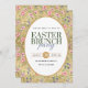 Floral de páscoa Brunch Party Um elegante buquê floral de flores aquáticas enquadra esta adorável festa de Páscoa religiosa para um encontro de igreja ou um brunch de Páscoa. Floral de páscoa Brunch Party Convites personalizados de brunch de Páscoa impressos personalizados com os detalhes do evento. Este bonito design botânico apresenta uma moldura de aquarela de flores coloridas. Use as ferramentas de design para personalizar o texto, editar as fontes e as cores de um convite elegante de festas de Páscoas florais de primavera.