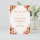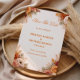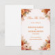 Um design quente e romântico inspirado nos tons de outono, apresentando arranjos florais suaves em tons de pêssego, laranja e rosa. A composição é delicadamente emoldurada com elementos botânicos, criando um layout equilibrado e refinado. A tipografia elegante e a paleta de cores harmoniosa realçam a estética atemporal e inspirada na natureza, perfeita para um tema de celebração aconchegante e sofisticado.
