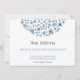 Um simples design com flores azuis, sujas e poeirentas, com caules de cinza e folhas sobre fundo branco. Adicione seu nome ou nomes seguidos pelo seu novo endereço. Pode também acrescentar uma pequena mensagem pessoal, como "manter-se em contato" ou "vir visitar". O motivo floral bonito é repetido no verso. Isto deixa-vos espaço suficiente para escrever uma mensagem se quiserem. Esta é uma maneira pessoal e ponderada de informar amigos, familiares e colegas para atualizar seus contatos para você.