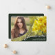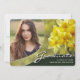 Um cartão de anúncio de formatura com foto personalizada exclusivo, apresentando elementos de design de texto com estilo de escrita elegante e moderno. A foto do graduado é realçada por belas flores amarelas em um fundo verde floresta. O verso do cartão oferece espaços para texto personalizado com informações sobre a formatura e jornada futura. Você pode personalizar facilmente as cores primárias e do texto no verso do cartão para atender às suas necessidades. Para ver mais itens como este, visite minha loja aqui em "www.Zazzle.com/LakeViewCardCo". Obrigado